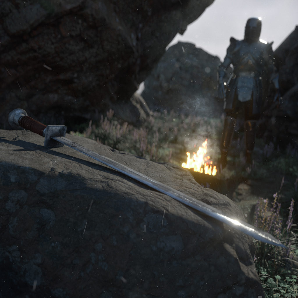 I modelled and textured a sword and I thought to myself why not making a scene with for it so I went pretty overkill with that one.